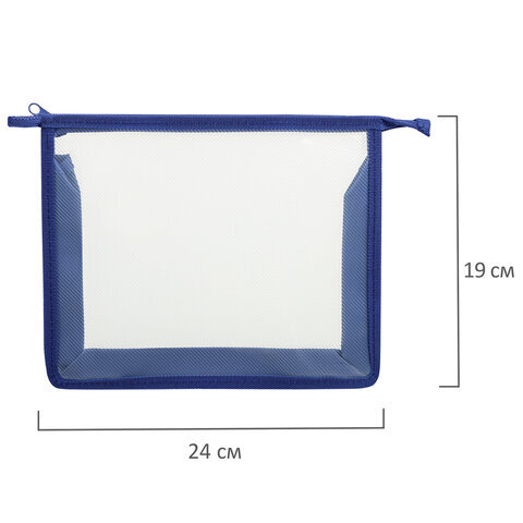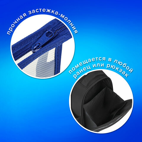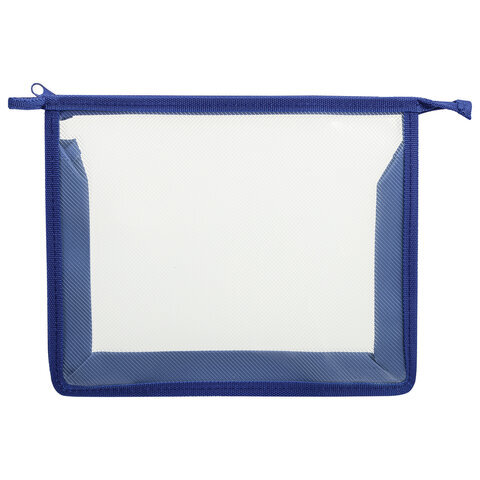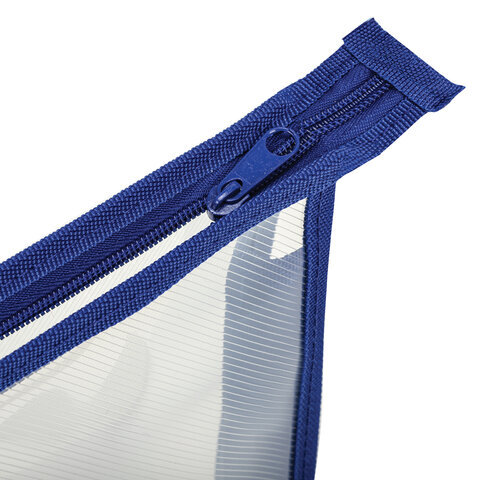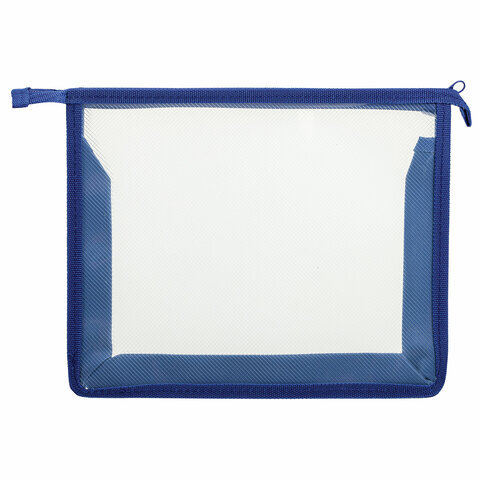Папка для тетрадей ПИФАГОР А5, пластик, молния сверху, прозрачная, синий, 272115