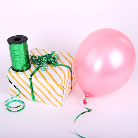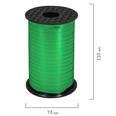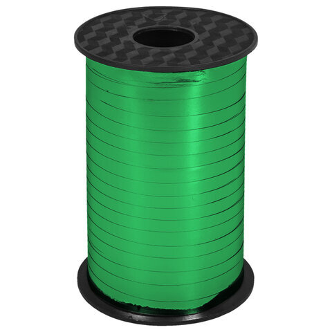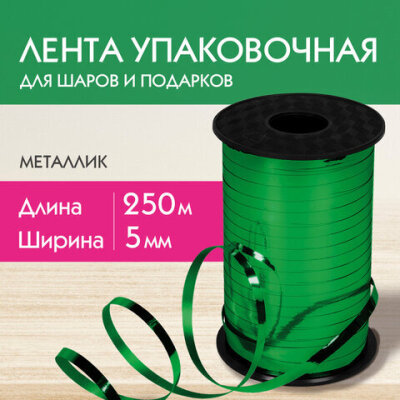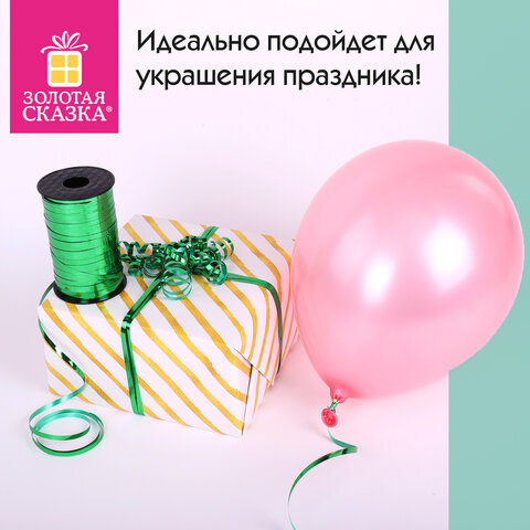 Лента упаковочная декоративная для шаров и подарков, металлик, 5 мм х 250 м, зеленая, ЗОЛОТАЯ СКАЗКА, 591819