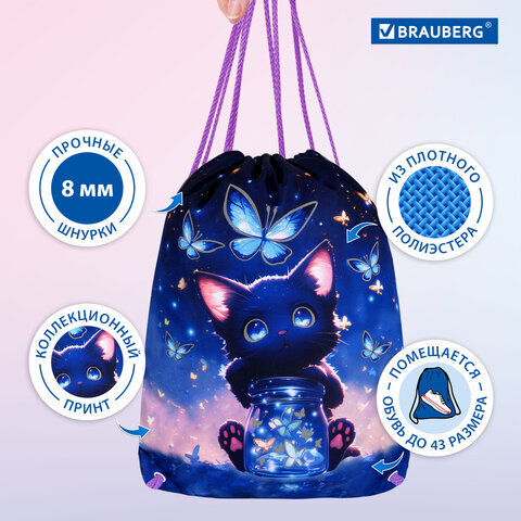 Мешок для обуви BRAUBERG PREMIUM "Night catcher" – необходимый аксессуар в школе! Подходит для сменной обуви и спортивной формы. Затягивается двумя шнурками. Можно носить на плечах за спиной.