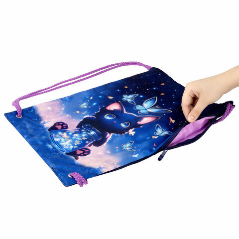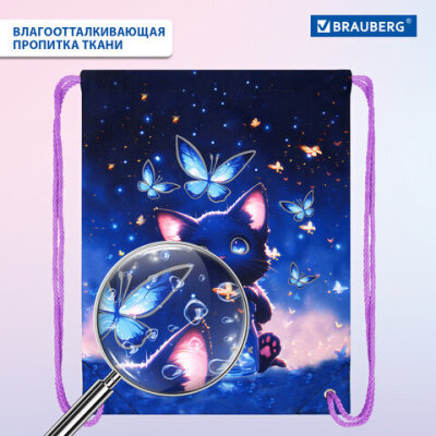 Мешок для обуви BRAUBERG PREMIUM, карман, подкладка, светоотражайка, 43х33 см, "Night catcher", 273442
