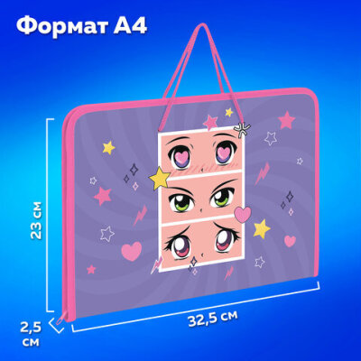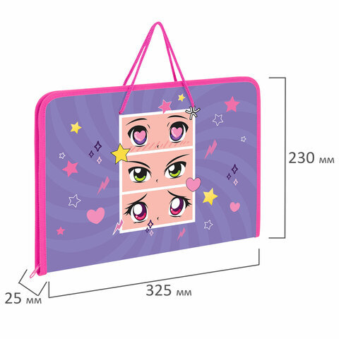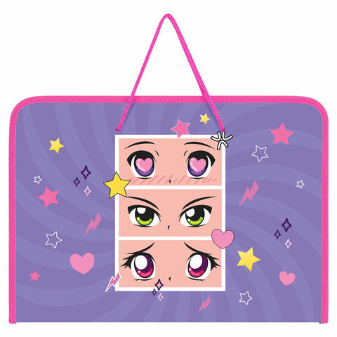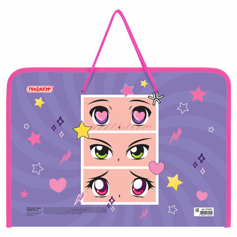 Папка для труда ПИФАГОР А4 "Anime eyes" с ручками предназначена для хранения и переноски тетрадей, альбома для рисования, цветной бумаги, картона и прочих бумаг.