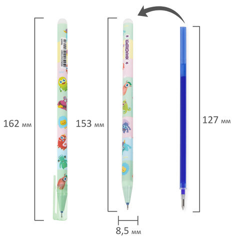 Стираемая гелевая ручка ЮНЛАНДИЯ "МОНСТРИКИ" пользуется популярностью у младших школьников: стираемые чернила позволяют писать аккуратно и без помарок, моментально внося корректировки в текст после написания.