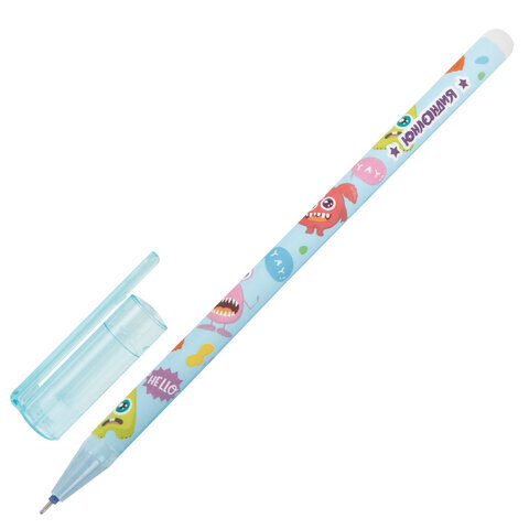Ручка стираемая гелевая с принтом ЮНЛАНДИЯ "МОНСТРИКИ", СИНЯЯ, корпус ассорти, игольчатый наконечник 0,5 мм, линия 0,35 мм, 144411