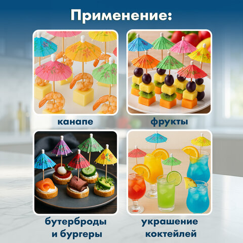 • Пики для канапе "Зонтик" изготовлены из натурального бамбука. Используются для создания канапе, мини-бутербродов, украшения блюд и напитков.