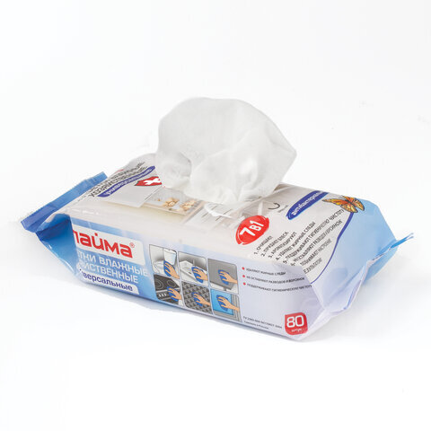 Салфетки влажные хозяйственные LAIMA "УНИВЕРСАЛЬНЫЕ "7 в 1", антибактериальные, 80 шт., 605659