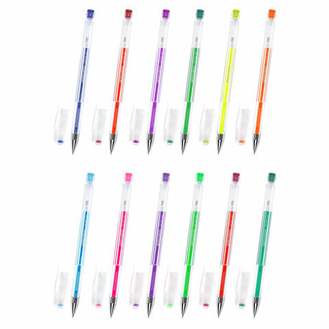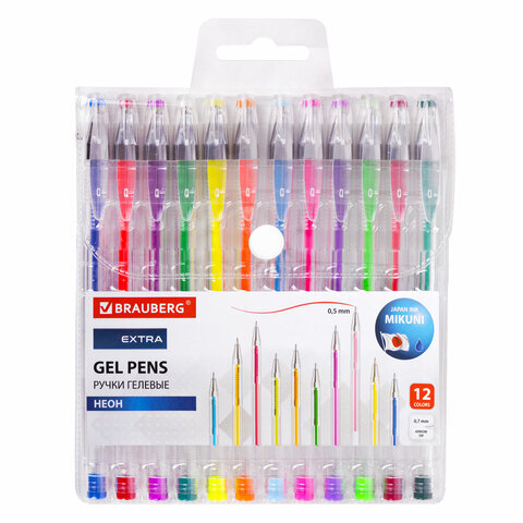 Ручки гелевые НЕОН BRAUBERG "EXTRA", НАБОР 12 ЦВЕТОВ, узел 0,7 мм, линия 0,5 мм, 143912