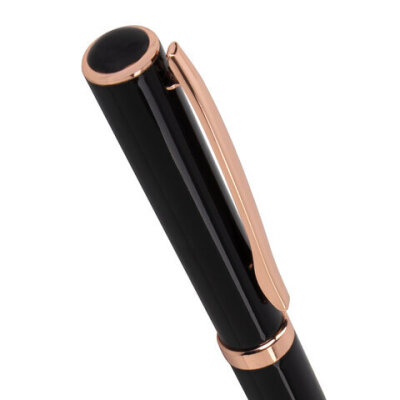 Ручка подарочная шариковая GALANT "PUNCTUM BLACK", корпус черный, детали розовое золото, узел 0,7 мм, синяя, 143514