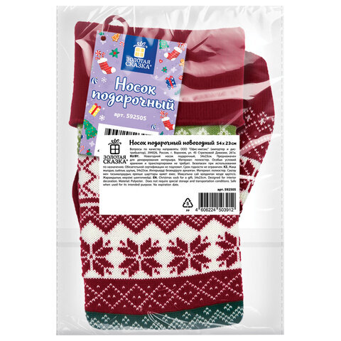 Носок новогодний для подарков, 23х2х54см, "Мечты сбываются", полиэстер, ЗОЛОТАЯ СКАЗКА, 592505