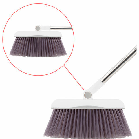 Совок для мусора КОМПЛЕКТ щетка + 2 рукоятки по 80 см, бело-серый, регулируемый углол щетки, разборный, колорбокс, LAIMA, 608953