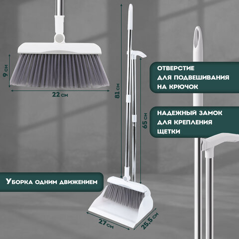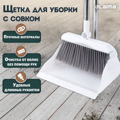• Совок для мусора и щетка на длинных рукоятках LAIMA предназначены для комфортной и эффективной уборки мусора в помещении. Компактные размеры и удобное крепление позволят хранить их в любом удобном месте вашего дома или офиса.