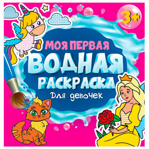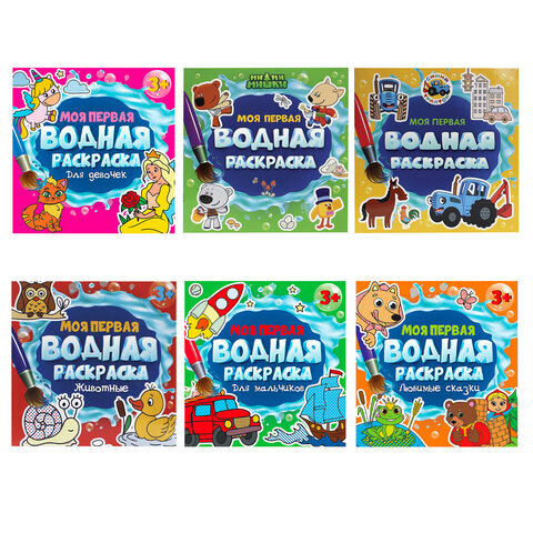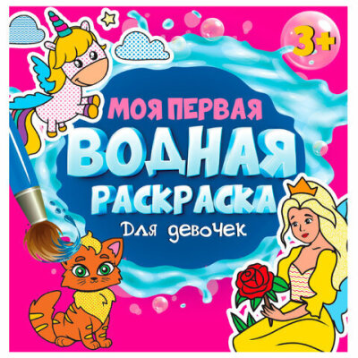 Раскраска водная "МОЯ ПЕРВАЯ ВОДНАЯ РАСКРАСКА", АССОРТИ, 195х195 мм, 12 стр., ПП