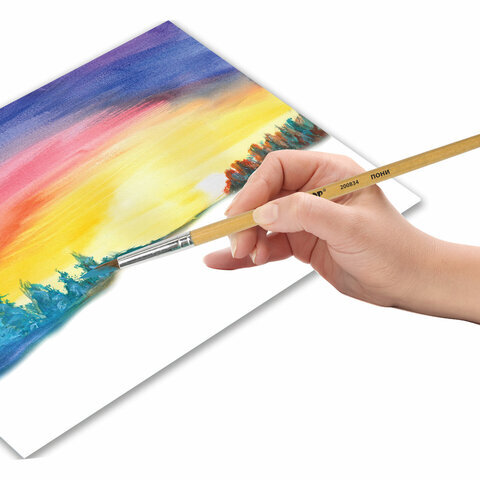 Кисть ПИФАГОР № 5 подходит для работы с акварелью, гуашью, тушью, а также для прорисовывания различных деталей рисунка. Снабжена защитным пластиковым колпачком.