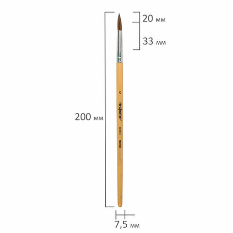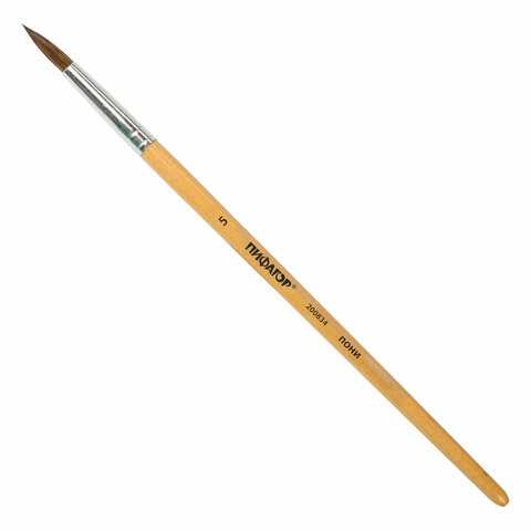Кисть ПИФАГОР, ПОНИ, круглая, № 5, деревянная лакированная ручка, с колпачком, 200834