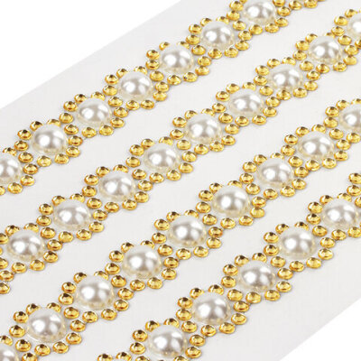 Стразы самоклеящиеся на ленте "ЖЕМЧУЖНЫЕ", 15 мм, 4 ленты, на подложке, ОСТРОВ СОКРОВИЩ, 662244