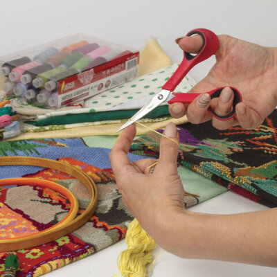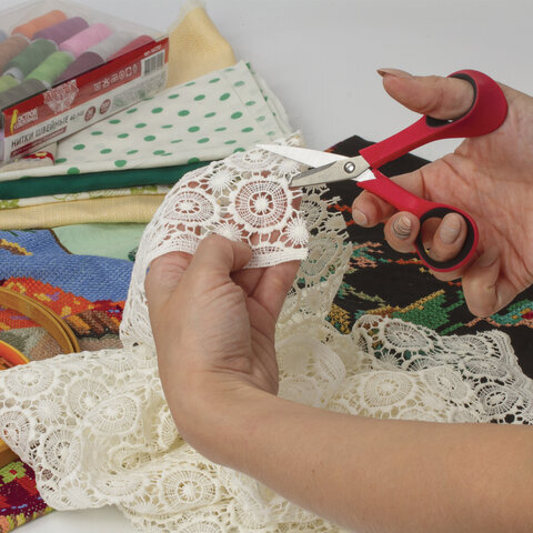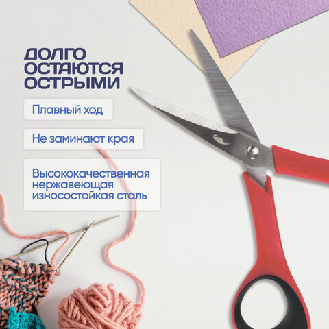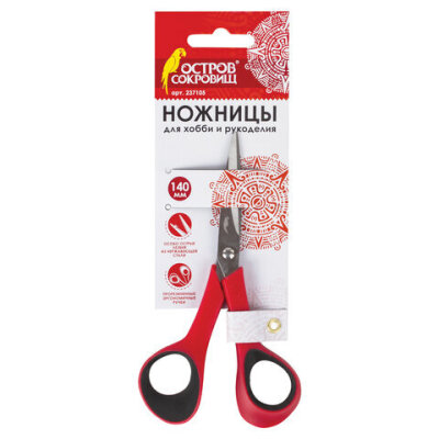 Ножницы для хобби и рукоделия ОСТРОВ СОКРОВИЩ 140 мм, 3-х сторонняя заточка, красно-черные, 237105