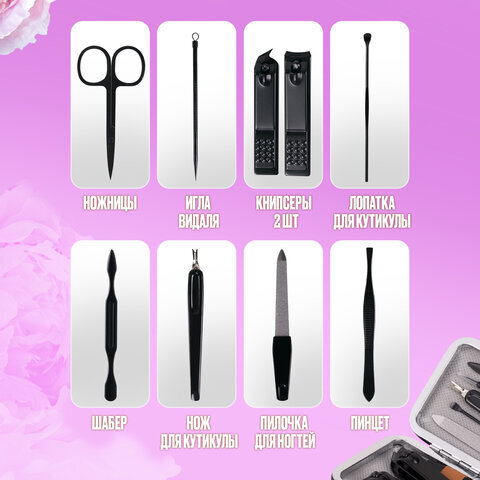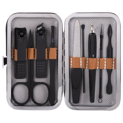 Универсальный набор для маникюра и педикюра 9 в 1 в футляре, MINI, черный, WBZ (ВБЗ), 609491