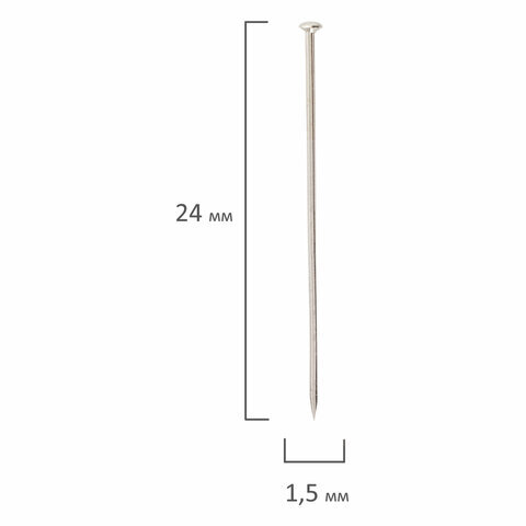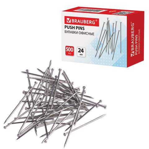 Булавки универсальные BRAUBERG, 24 мм, 500 штук, в картонной коробке, 220562