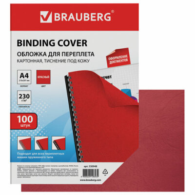 Обложки для переплета BRAUBERG придадут документам эстетичный внешний вид и защитят от повреждений. Предназначены для переплета документов брошюровщиком с помощью пластиковых и металлических пружин. Актуальны для создания деловых брошюр.