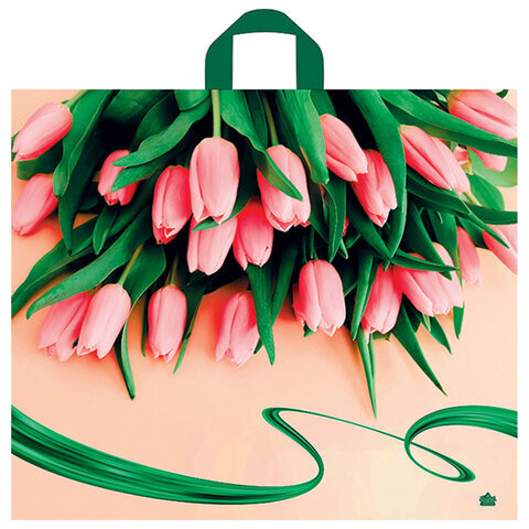 Пакет с петлевой ручкой ПВД, 50х60 см, "Райские тюльпаны", 60 мкм, н00242805