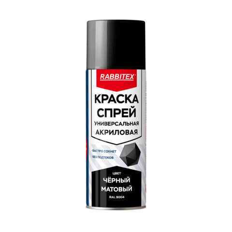 Краска-спрей акриловая универсальная черная матовая RAL 9004, 520 мл, нетто-вес 265 грамм, RABBITEX (РАББИТЕКС), 700300