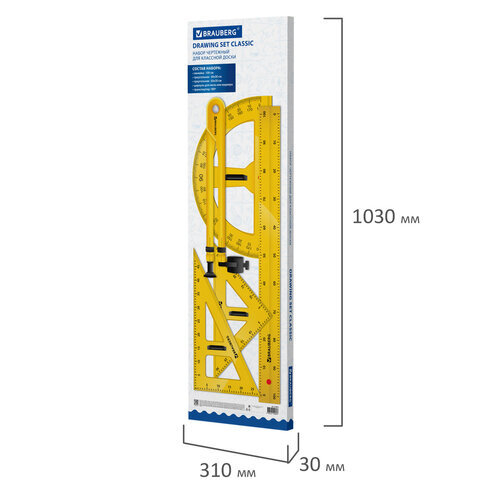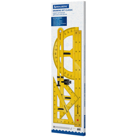 Набор чертежный BRAUBERG предназначен для выполнения чертежных работ на классных досках.