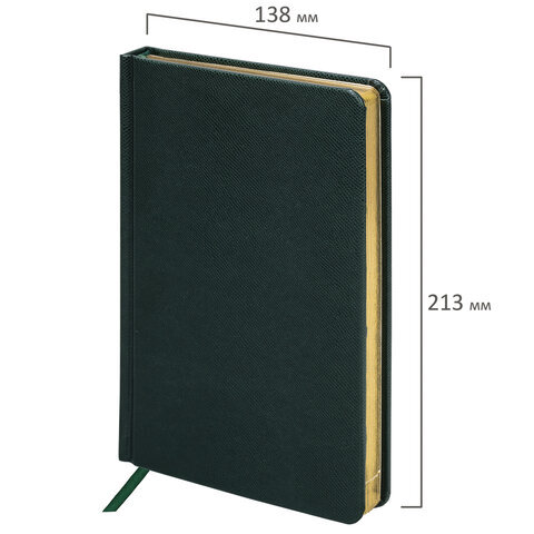 Ежедневник недатированный А5, 138х213 мм, BRAUBERG "Iguana", под кожу, 160 л., тёмно-зеленый, 114457