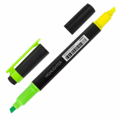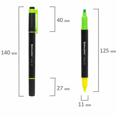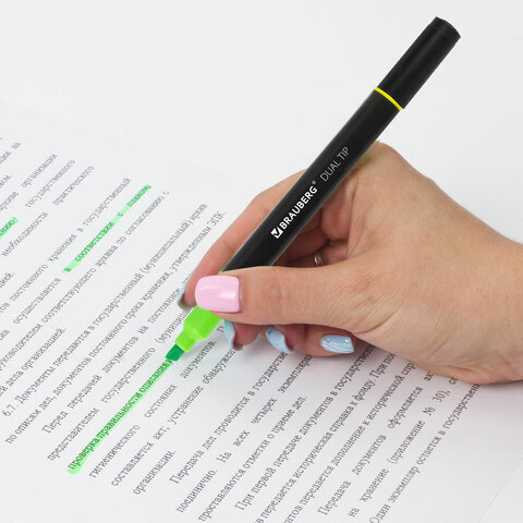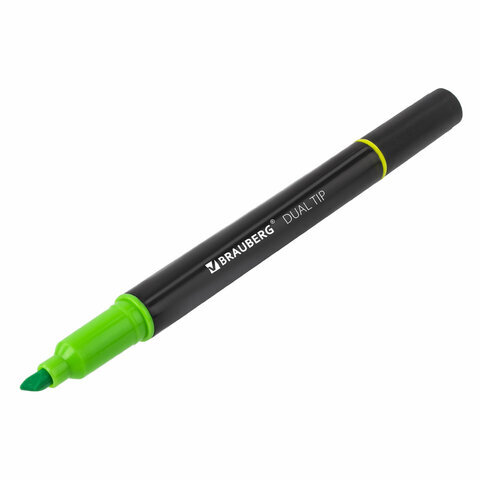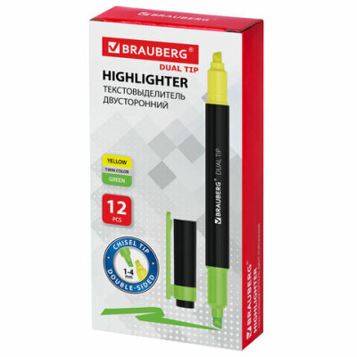 Текстовыделитель двусторонний BRAUBERG, ЖЕЛТЫЙ/ЗЕЛЕНЫЙ, линия 1-4 мм, 150841