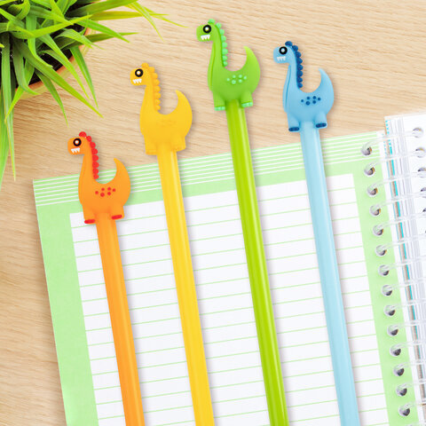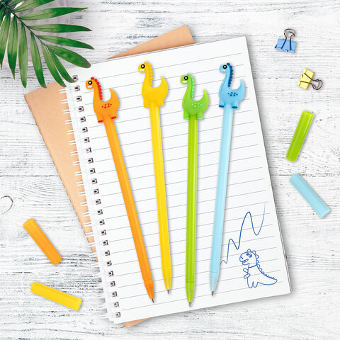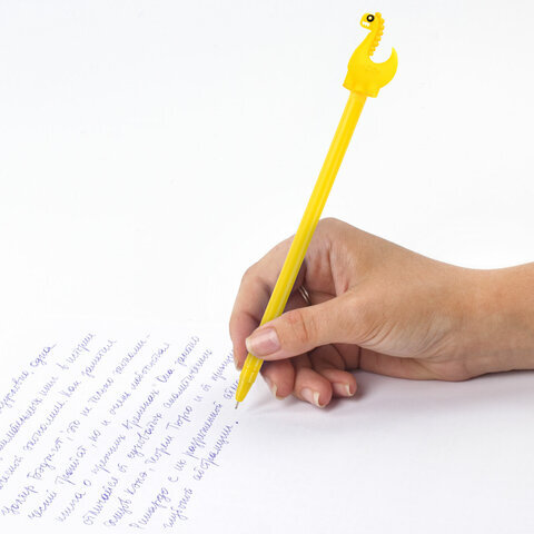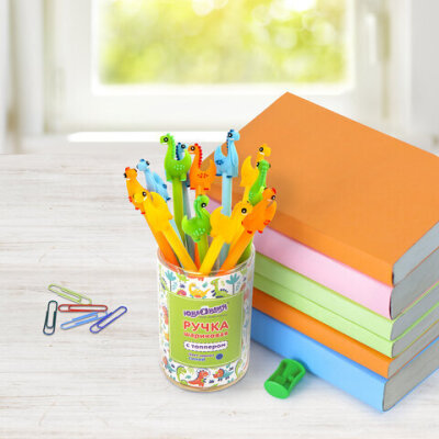 Шариковая ручка масляная ЮНЛАНДИЯ "Динозаврик" с милой игрушкой на корпусе.