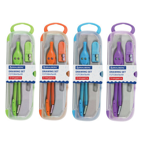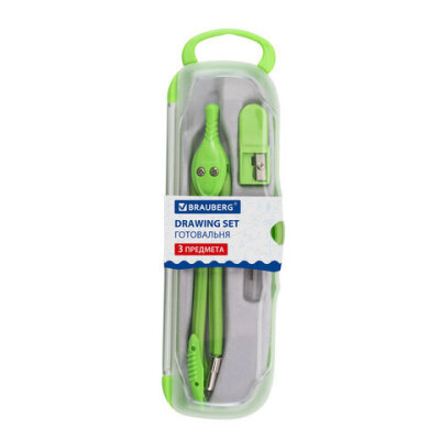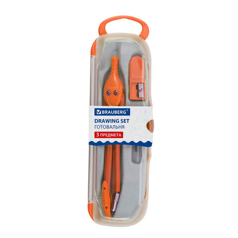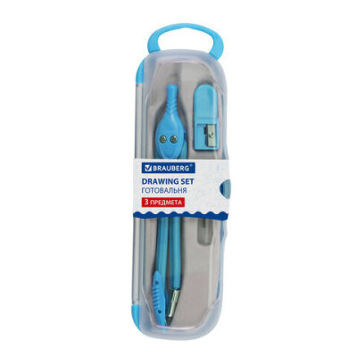 Готовальня BRAUBERG "Modern", 3 предмета: циркуль 135 мм, точилка, грифель, пенал с подвесом, 210663