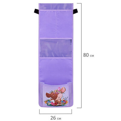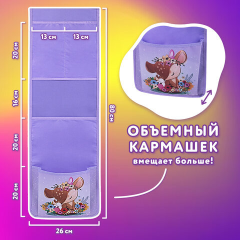 Кармашки-органайзер в шкафчик для детского сада ЮНЛАНДИЯ, с ПРОЗРАЧНЫМ КАРМАНОМ, увеличенный размер, 26х80 см, "Deer", 271070