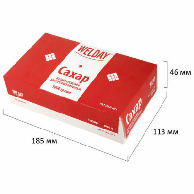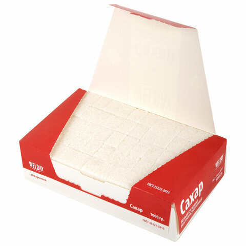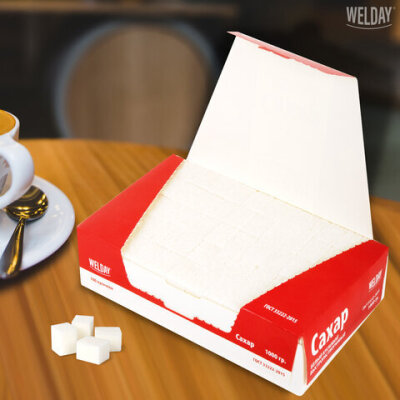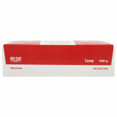 Сахар-рафинад WELDAY прессованный быстрорастворимый производится на современном оборудовании из сахара-песка высокого качества. Вес пачки – 1 кг (180 кусочков).