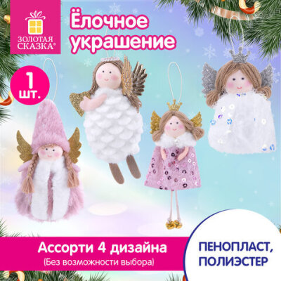 Украшение елочное 16 см, "Принцесса", полиэстер, ассорти 4 дизайна, ЗОЛОТАЯ СКАЗКА, 592608