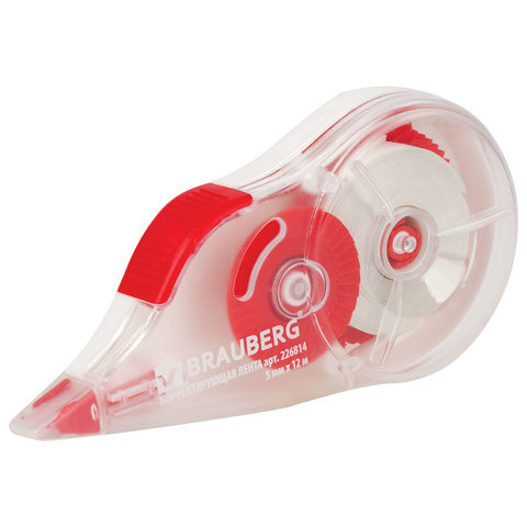 Корректирующая лента BRAUBERG, 5 мм х 12 м, корпус прозрачный, механизм перемотки, блистер, 226814