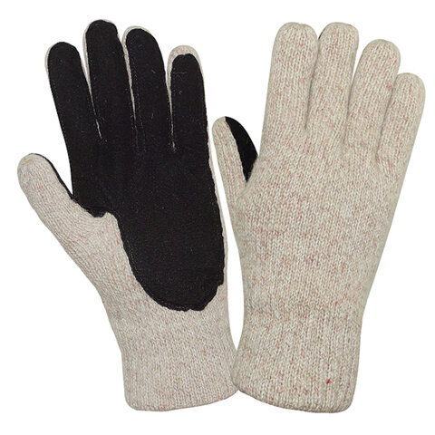 Перчатки шерстяные АЙСЕР, утепленные со спилковыми накладками, размер 11, XXL (экстра большой), бежевые/черные, ПЕР701