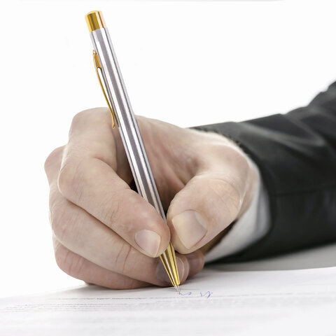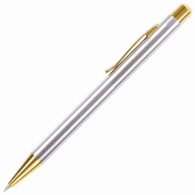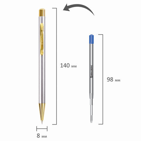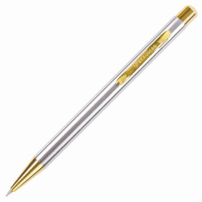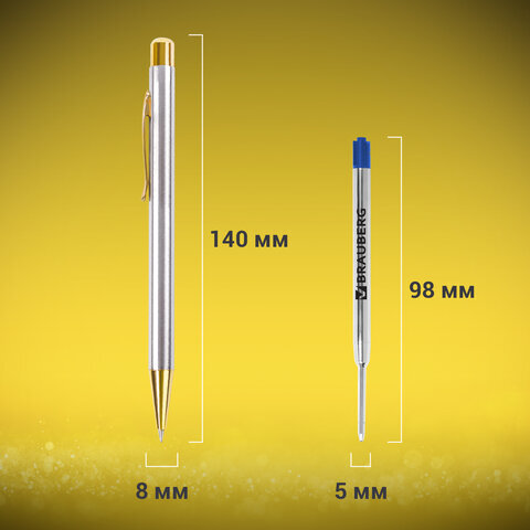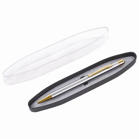 Ручка подарочная шариковая BRAUBERG Piano, СИНЯЯ, корпус серебристый с золотистым, линия письма 0,5 мм, 143472