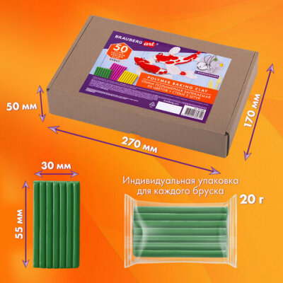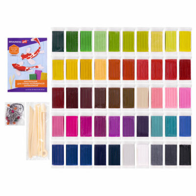 Глина полимерная запекаемая, НАБОР 50 цветов по 20 г, с аксессуарами, в гофрокоробе, BRAUBERG, 271161