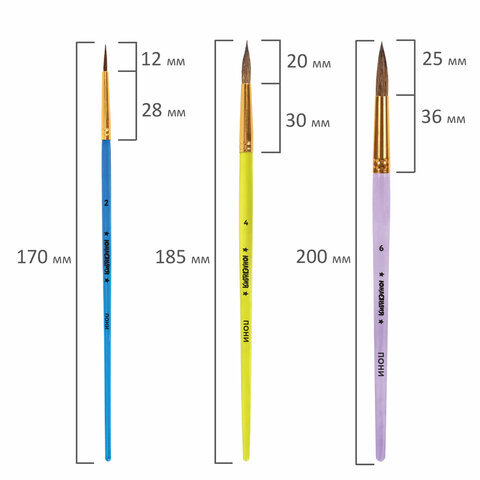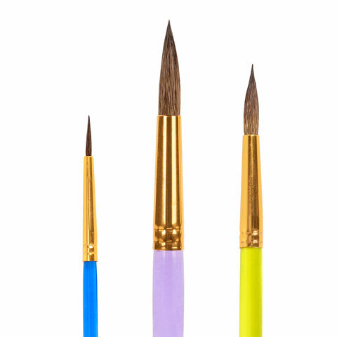 Набор из трех кистей разного размера ЮНЛАНДИЯ позволяет начинающим художникам решать любые творческие задачи в детском саду, школе и дома.