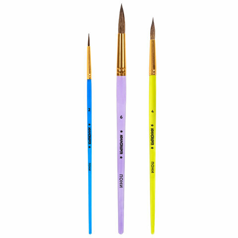 Кисти ПОНИ набор 3 шт. (круглые № 2, 4, 6), блистер, ЮНЛАНДИЯ, 201068