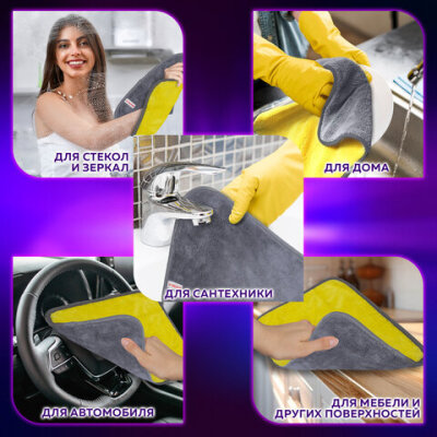 Универсальная двусторонняя салфетка из микрофибры предназначена для ухода за различными видами поверхностей. Используется как в сухом, так и во влажном виде. Подходит для для дома и офиса. Идеальна для мыться автомобиля как внутри, так и снаружи.