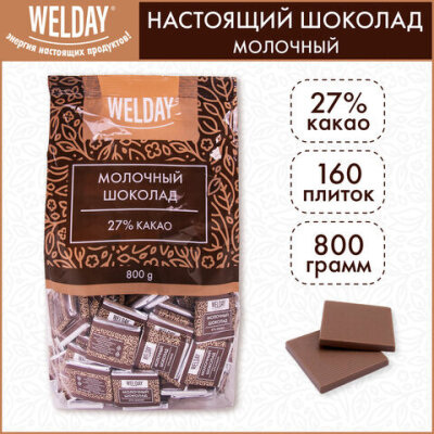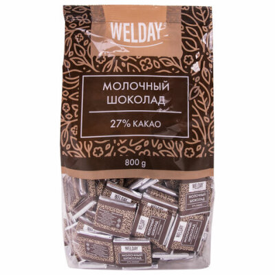 Шоколад порционный высшего качества WELDAY (ВЭЛДЭЙ) "Молочный 27%", 800 г (160 плиток по 5 г), пакет, 622406