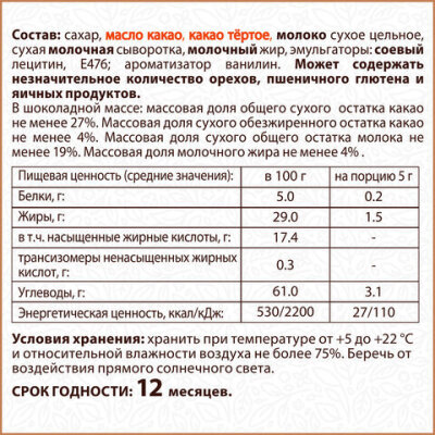 • Качественный шоколад WELDAY "Молочный 27%" – это вкусный и полезный десерт, который станет превосходным дополнением к чашечке чая или кофе. Каждая плитка упакована в серебряную фольгу и бумажную этикетку с оригинальным дизайном.