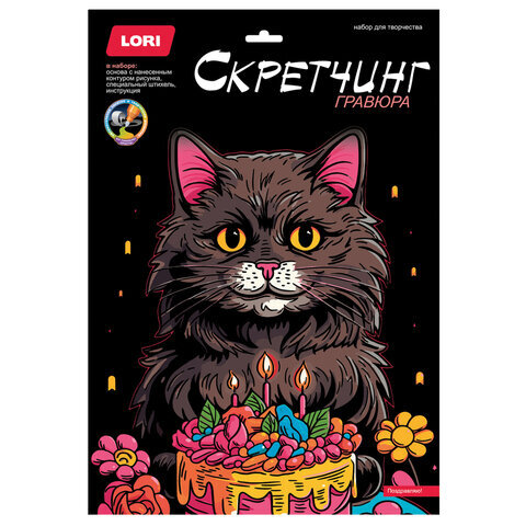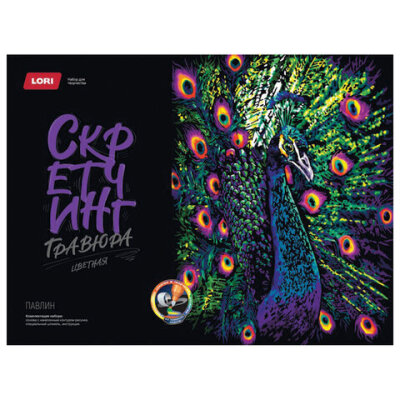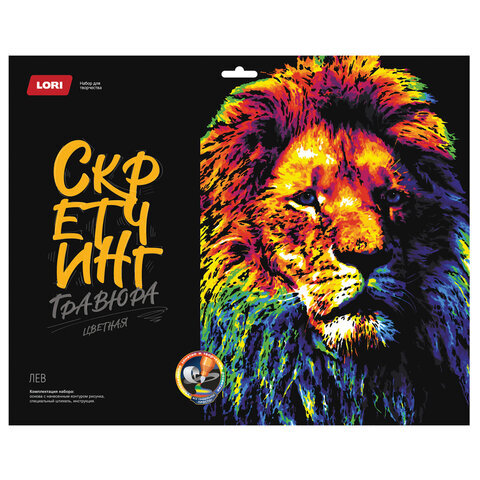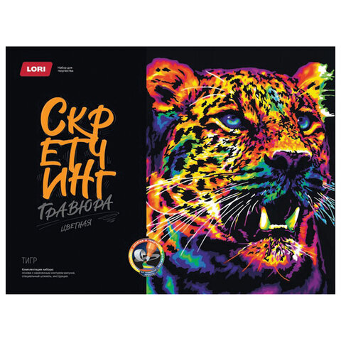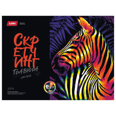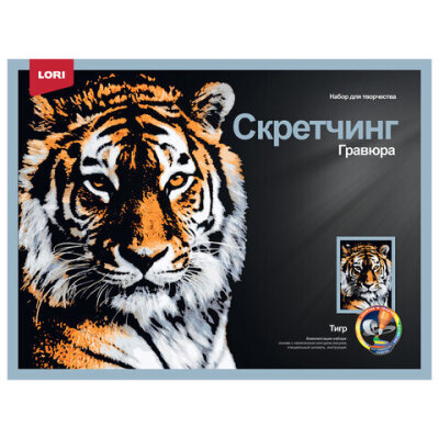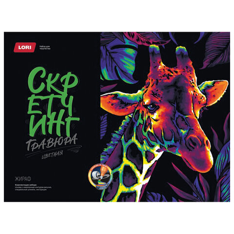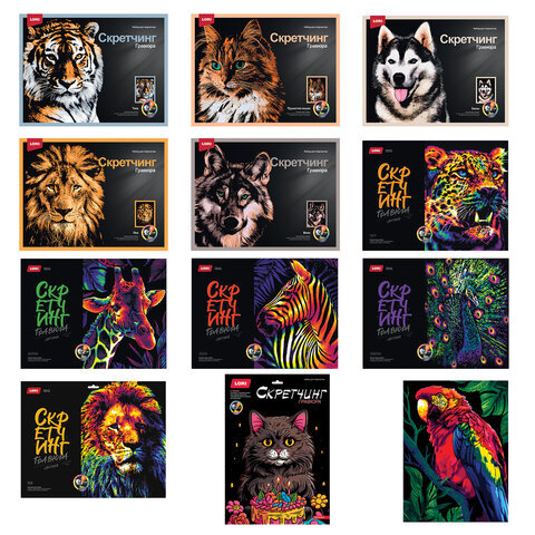 Гравюра в технике Скретчинг "Животные" АССОРТИ, цветная основа 30х40 см, штихель, LORI, 001