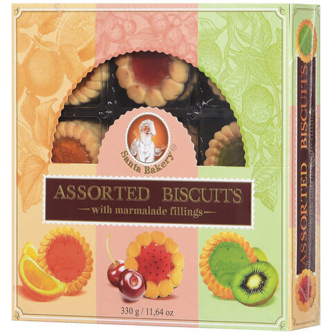 Печенье БИСКОТТИ "Santa Bakery", ассорти с мармеладными начинками, 330 г