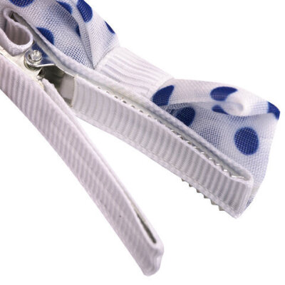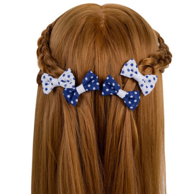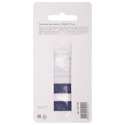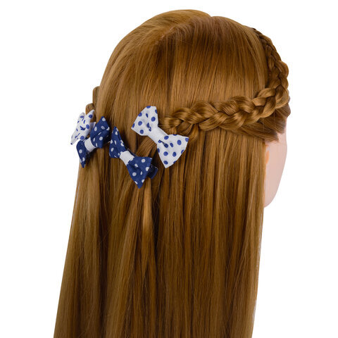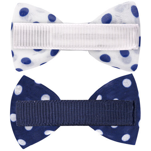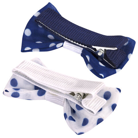 Заколки для волос НАБОР 4 шт., 5х2,5 см, зажим, с бантиком, синий, белый в горошек, MONTE VITA (МОНТЕ ВИТА), 457108