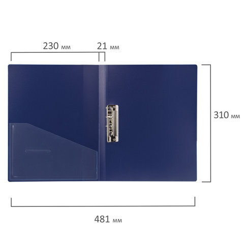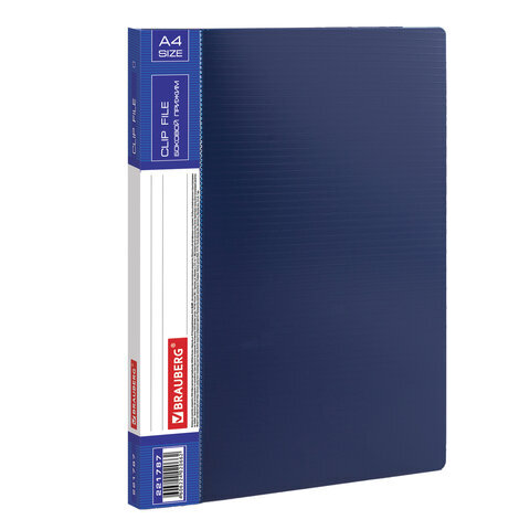 Папка с боковым металлическим прижимом и внутренним карманом BRAUBERG "Contract", синяя, до 100 л., 0,7 мм, бизнес-класс, 221787