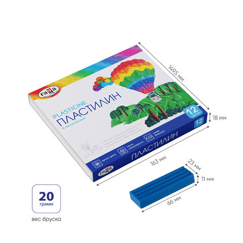 Пластилин классический ГАММА "Классический", 12 цветов, 240 г, со стеком, картонная упаковка, 281033