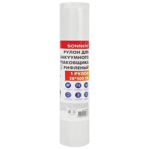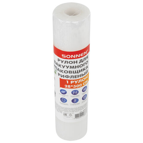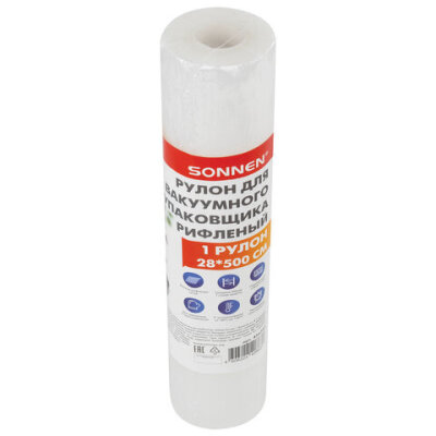 Рулон для вакуумного упаковщика, рифленый, 28х500 см, 1 шт., SONNEN, максимальный вакуум, 456343