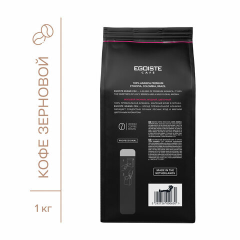 Кофе в зернах EGOISTE "Grand Cru" 1 кг, арабика 100%, НИДЕРЛАНДЫ, EG10004023
