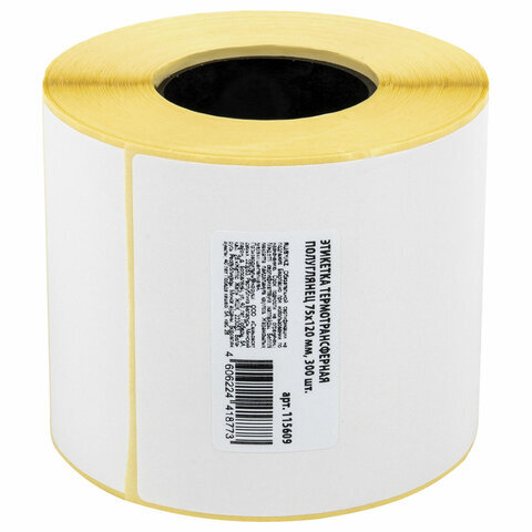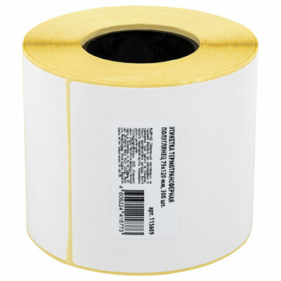 Этикетки термотрансферные, ПОЛУГЛЯНЕЦ, 75х120 мм, 300 этикеток в ролике, 115609