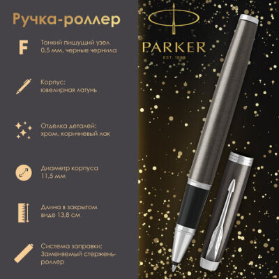 Ручка-роллер PARKER "IM Core Dark Espresso CT", корпус кофейный лак, хромированные детали, черная, 1931664